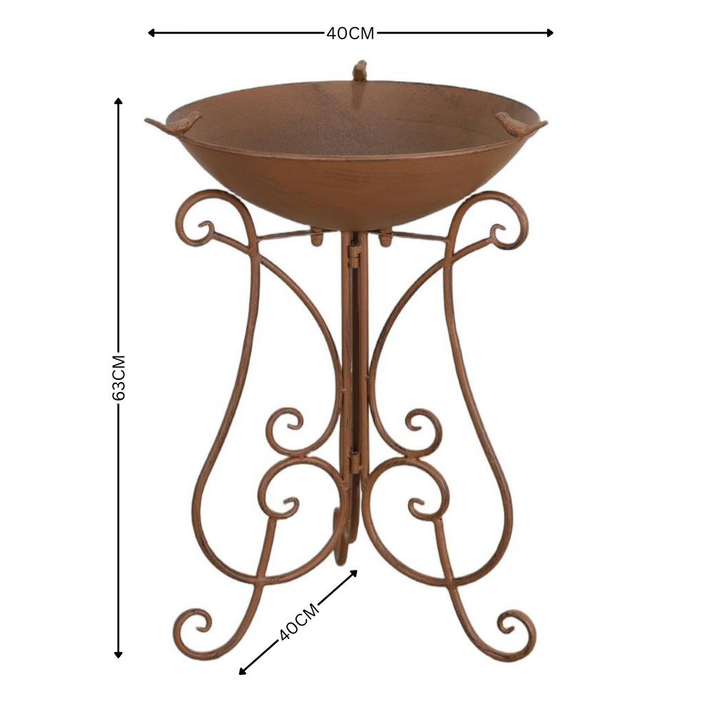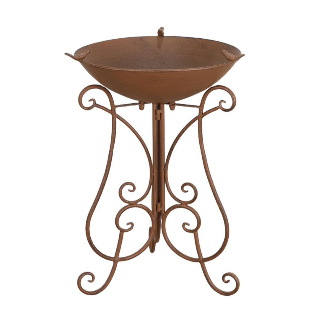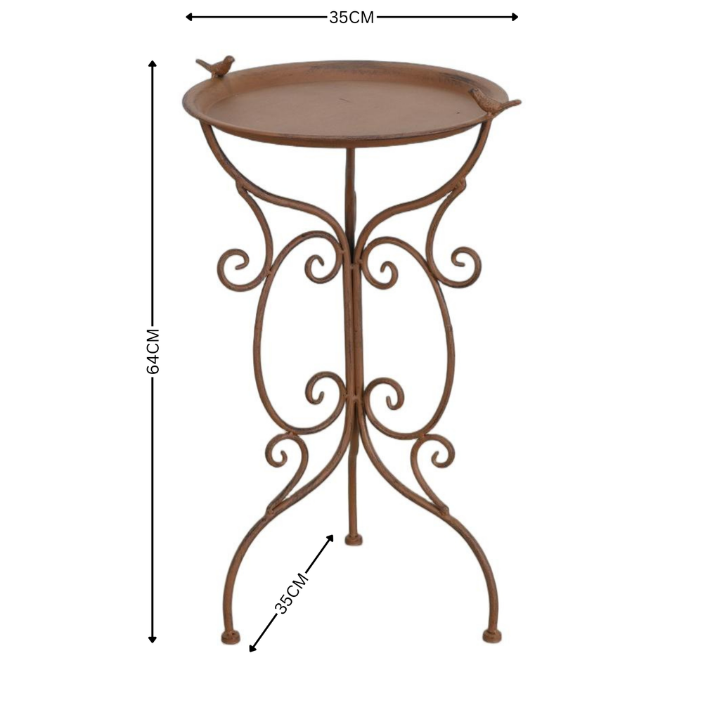 Birdfeeder Hanging Petal Silver Tray with Rust Bird
