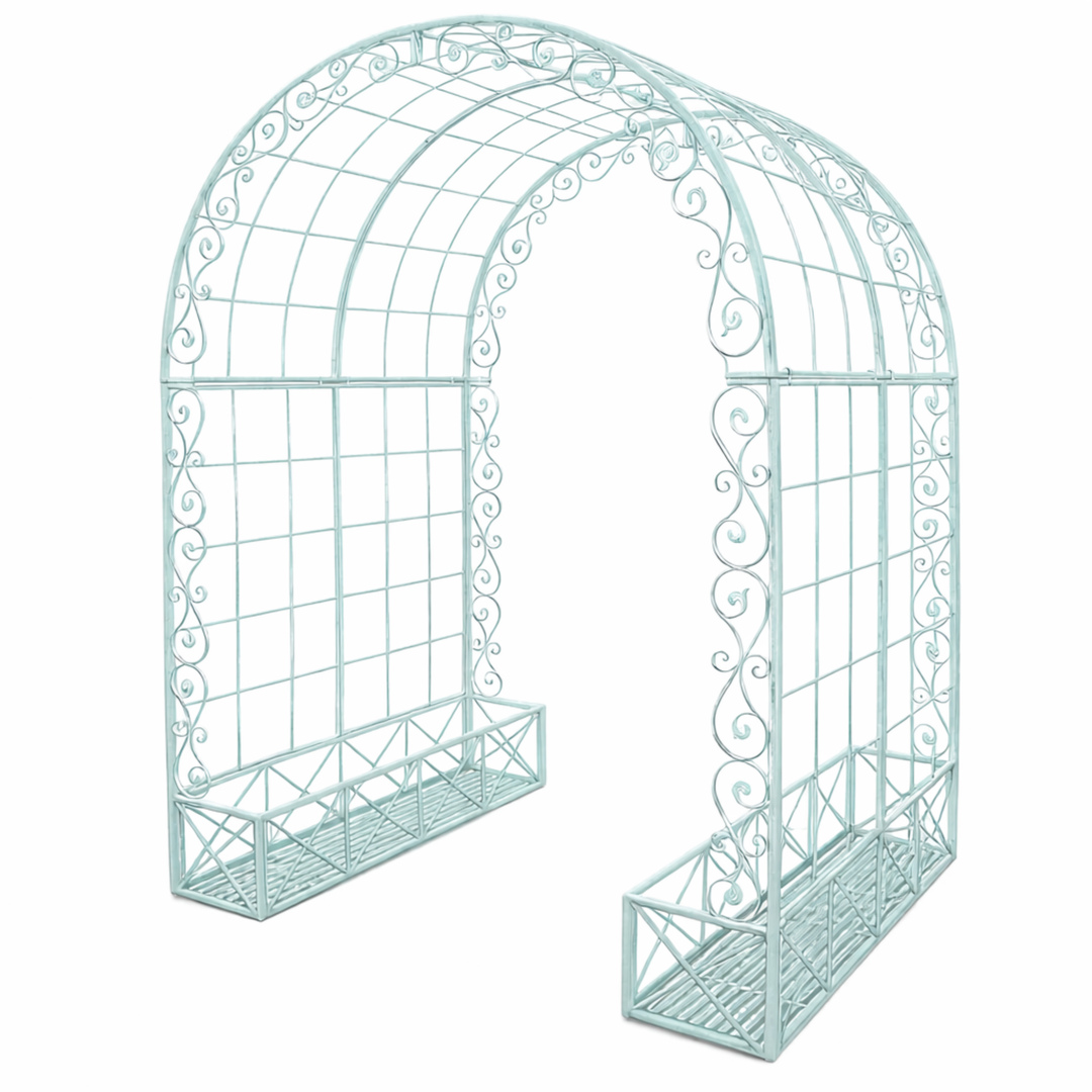 Arch Metal with Gate and Planters in Rustic Brown 162x40x221cm