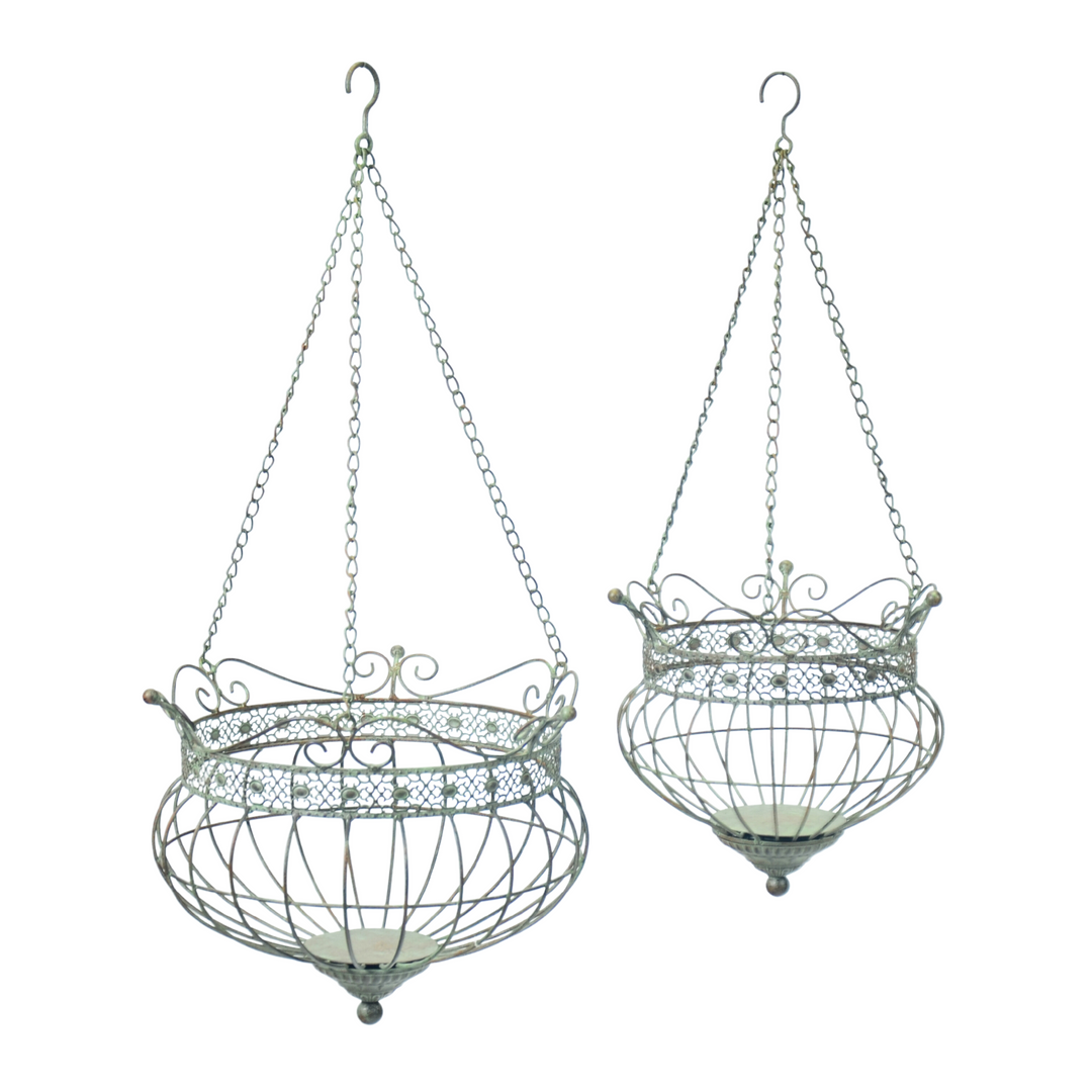 Plant Stand - Two Hanging Baskets Distressed Cream